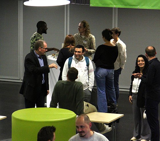Ein zentrales Element der Veranstaltung war der offene Austausch: An thematischen Diskussionstischen kamen Personen unterschiedlichster Fachrichtungen und Tätigkeitsbereiche miteinander ins Gespräch – über Sprachmodelle, Bildverarbeitung, Datenauswertung oder Grundlagenwissen zu KI. An den Thementischen aber auch beim Essen und darüber hinaus entstanden nicht nur neue Kontakte, sondern auch Ideen für fachübergreifende Kooperationen.